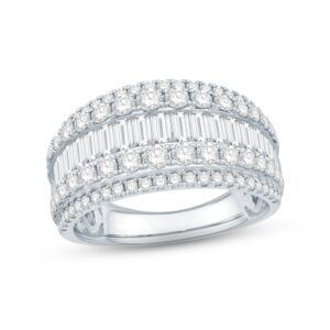 Diamond Anniversary Ring 2 ct tw Round & Baguette-cut 14K White Gold